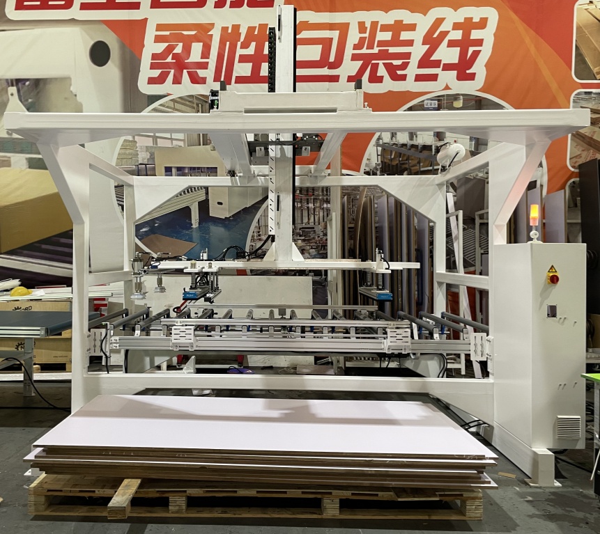 2.Pilih lan ngrangkul: Manipulator Gantry nyopir mekanisme sing nyekel kanggo pindhah langsung ing ndhuwur panel. Kamera industri nemokake posisi panel;