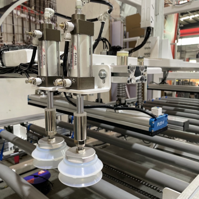 4.Prences: Sawise panel dikirim menyang posisi peralatan sing wis ditemtokake, cangkir sing nyedhot ngeculake vakum kanggo ngrampungake proses loading. Ing wektu sing padha,